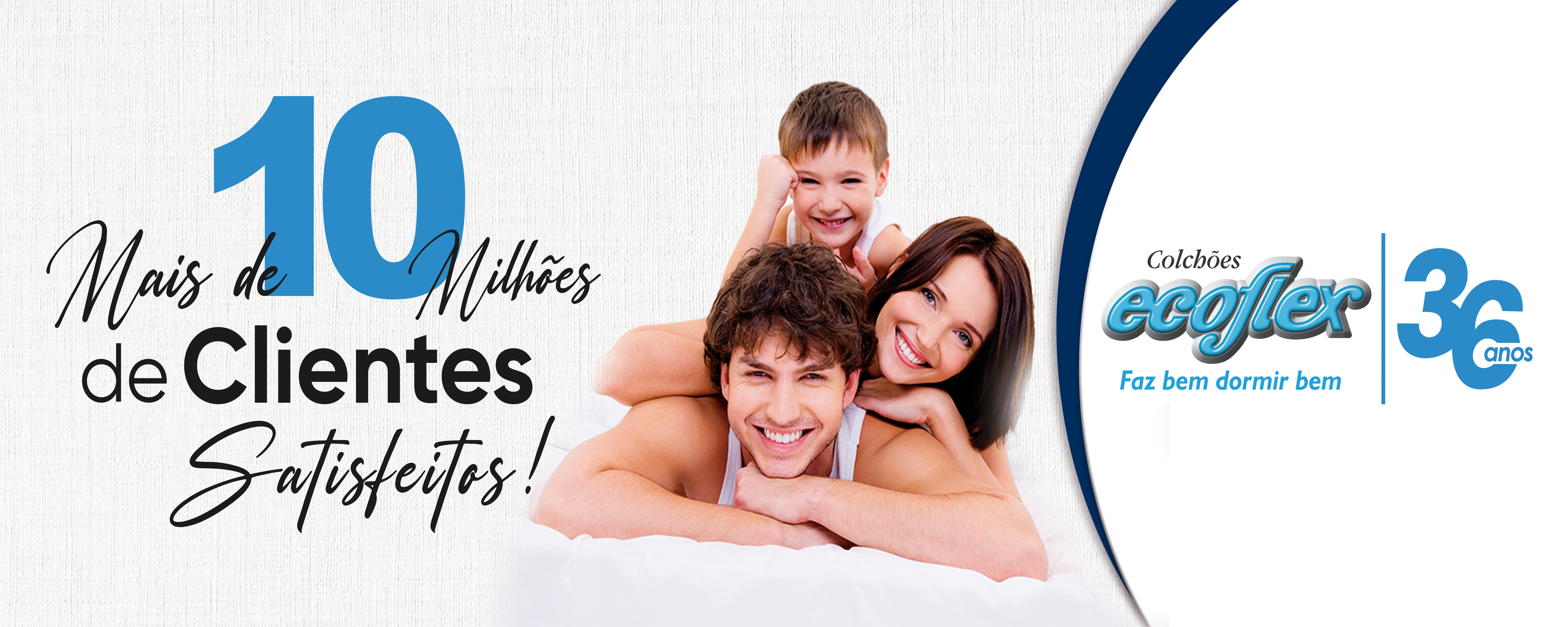 Algumas conquistas marcam a história da Ecoflex, e a mais recente foi atingir a marca de 10 milhões de consumidores satisfeitos é uma honra, motivo de muito orgulho! Isso porque, todos os dias, os seus profissionais dedicam-se ao máximo para atender da melhor maneira cada pessoa que vem buscar em nossas lojas o seu modelo de colchão dos sonhos. Aliás, é para isso que temos trabalhado, para desenvolver colchões para todos os gostos e preferências.